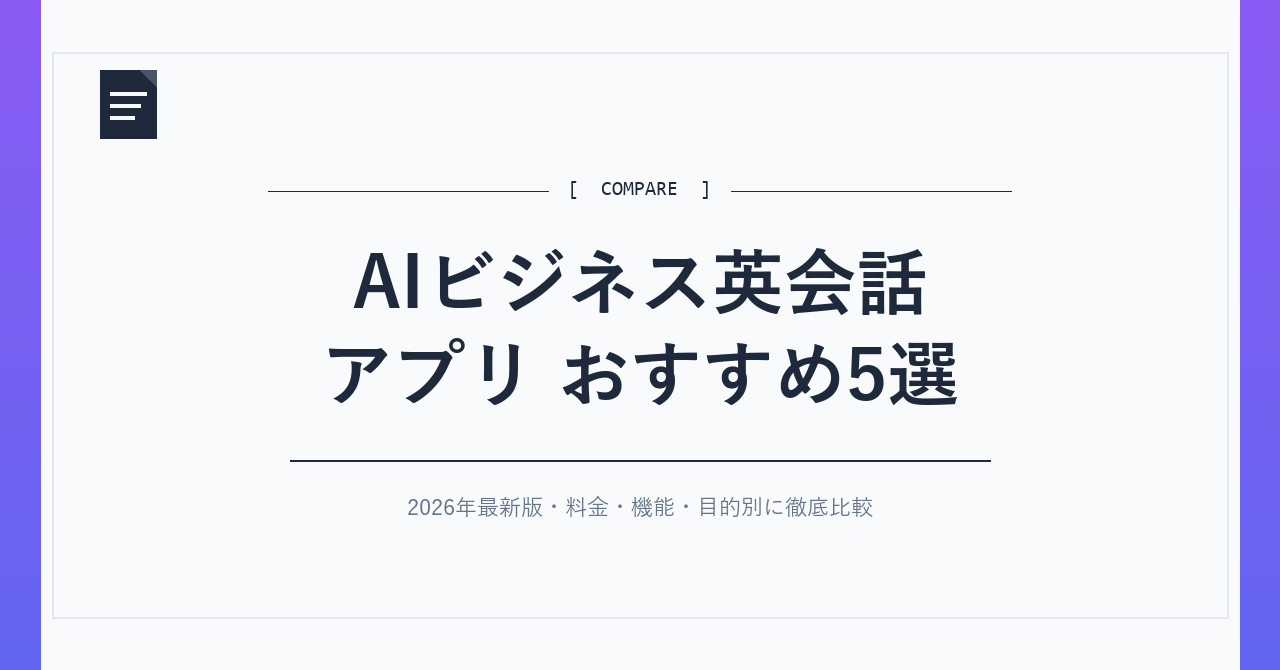 AIビジネス英会話アプリ おすすめ5選【2026年最新比較】料金・機能・目的別に徹底解説