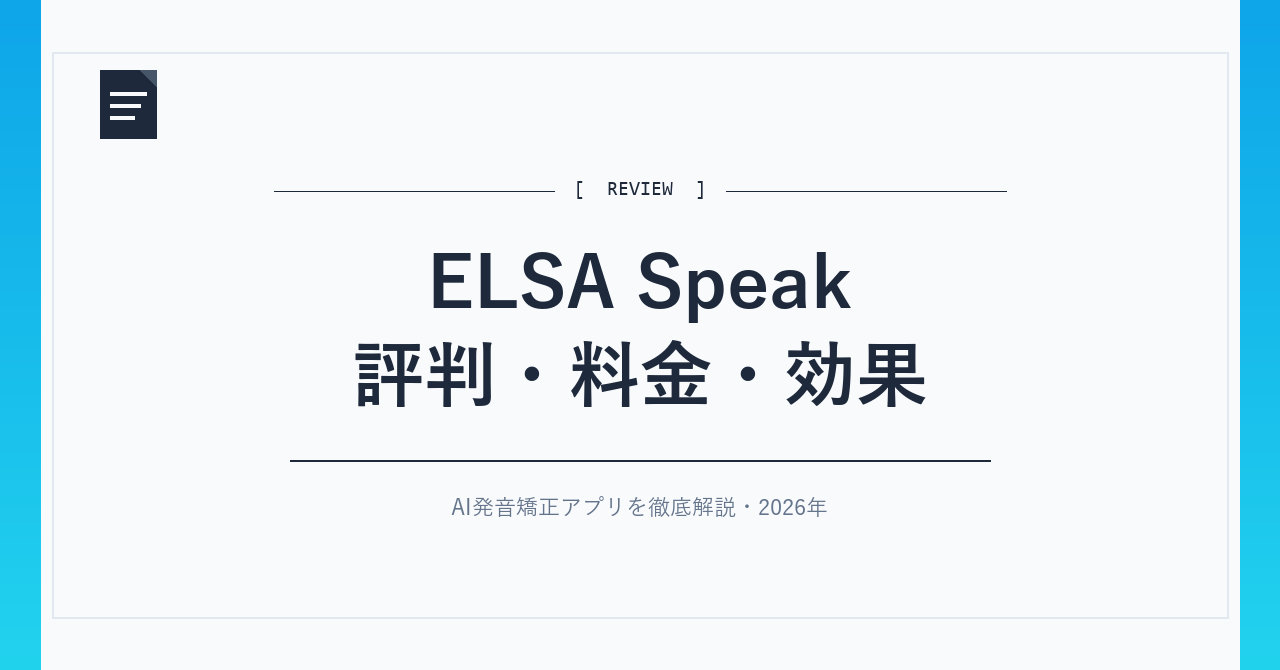 ELSA Speak(エルサスピーク)評判・料金・効果|AI発音矯正アプリを徹底解説【2026年】